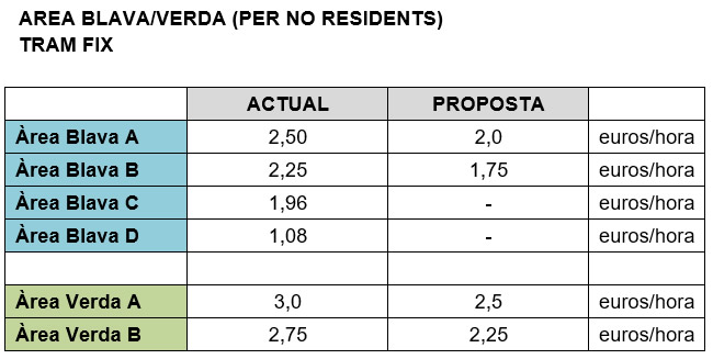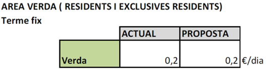 En el cas de les places d’AREA Verda per a residents es manté la tarifa fixada en 0,2 euros/dia amb un màxim d’1 euro/setmana.