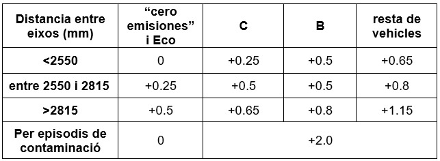 - L’estacionament regulat a la via pública per a no residents estableix un sistema de tarifes variable en funció de les emissions del vehicles, de les seves dimensions i dels episodis de contaminació