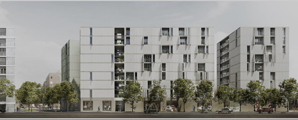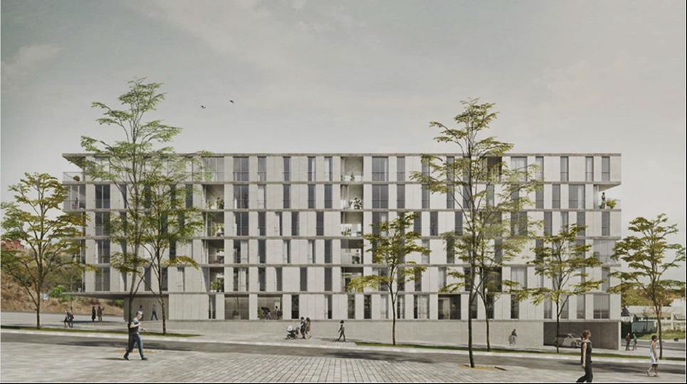 Es construirà un edifici de vuit plantes amb 112 habitatges de lloguer públic i també una part en dret de superfície. D’aquests, 48 seran de dos dormitoris i 64 de tres dormitoris, amb una superfície útil de 8.859 m2. També tindrà 186 places d’aparcament, amb una superfície útil de 5.504 m2. L’espai destinat a locals i a espais comuns és de 2.229 m2 i 1.050 m2 respectivament.