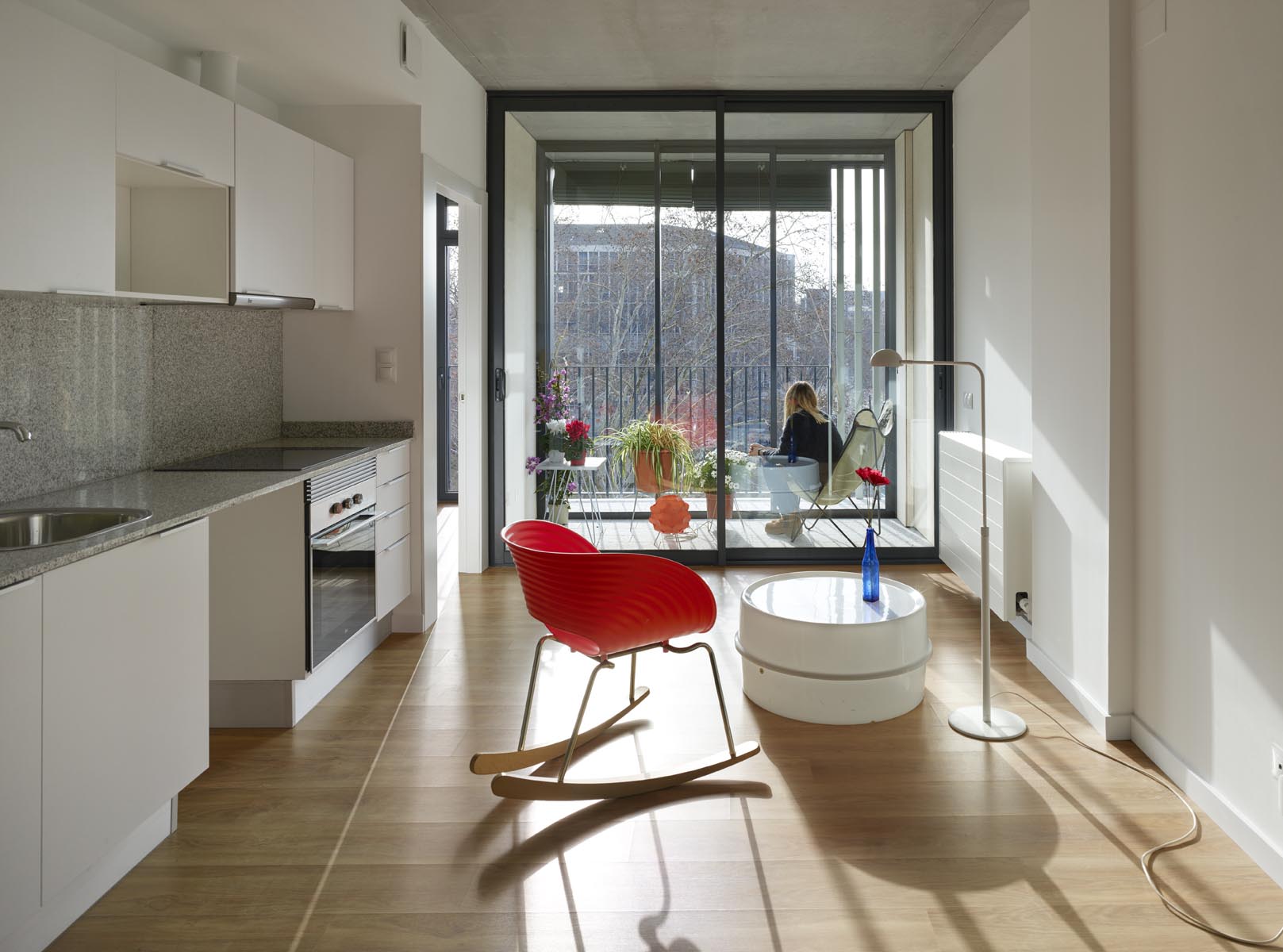 Aquest és el primer edifici que promou l’IMHAB que combina dos programes que habitualment funcionen en edificis separats: els habitatges de lloguer públic i els allotjaments temporals per a la inclusió de col•lectius amb situació de vulnerabilitat.
