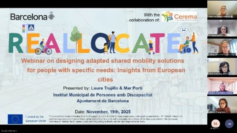 El pasado 19 de noviembre el Instituto Municipal de Personas con Discapacidad (IMPD) participó en el seminario online “Diseño de soluciones de movilidad compartida y adaptada para personas con necesidades específicas”, enmarcado en el proyecto europeo REALLOCATE, financiado por el programa Horizon Europe.