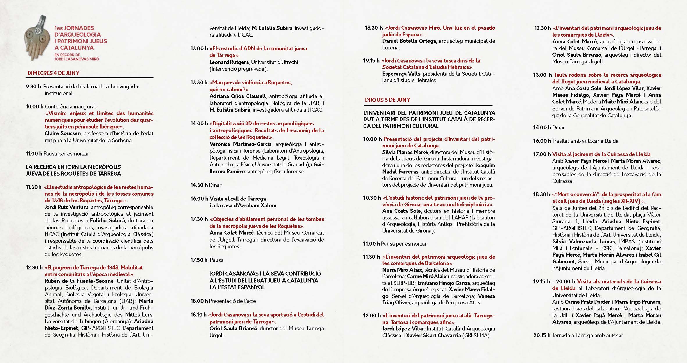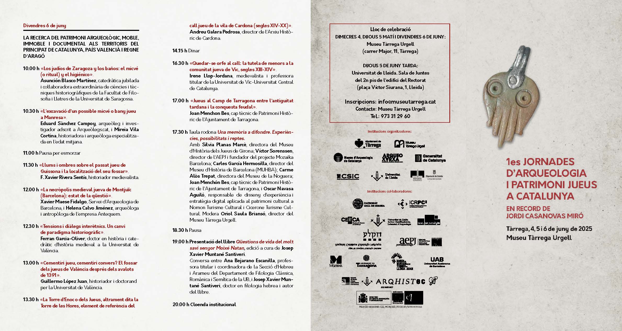 Els propers dies 4, 5 i 6 de juny de 2025 es celebren les Primeres Jornades d’Arqueologia i Patrimoni Jueus a Catalunya, unes jornades en homenatge a Jordi Casanovas i Miró, el millor especialista en epigrafia hebrea dels darrers temps.