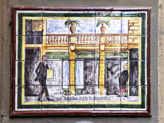 Descripció: placa situada a la façana de l’edifici. El mosaic està realitzat amb rajoles de ceràmica esmaltada de forma quadrangular. La inscripció indica en lletres marró i verd sobre fons blanc: