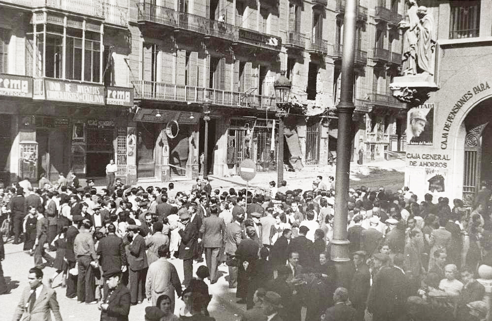 Vista general de la plaça de Catalunya de Barcelona. Gener de 1939. Biblioteca Nacional de España