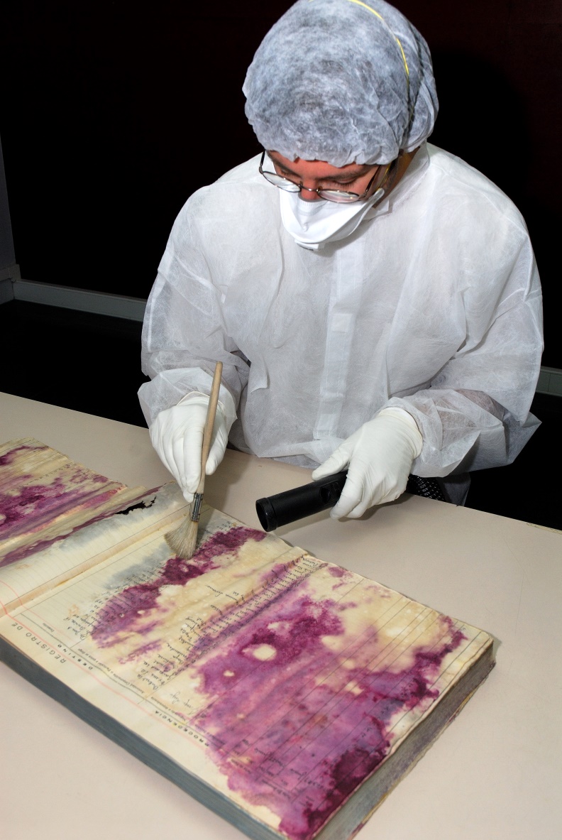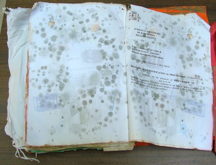 - L'activitat que deteriora la documentació varia segons el gènere: taques violàcies, decoloració del suport, acidificació, deteriorament de les fibres cel·lulòsiques, etc.