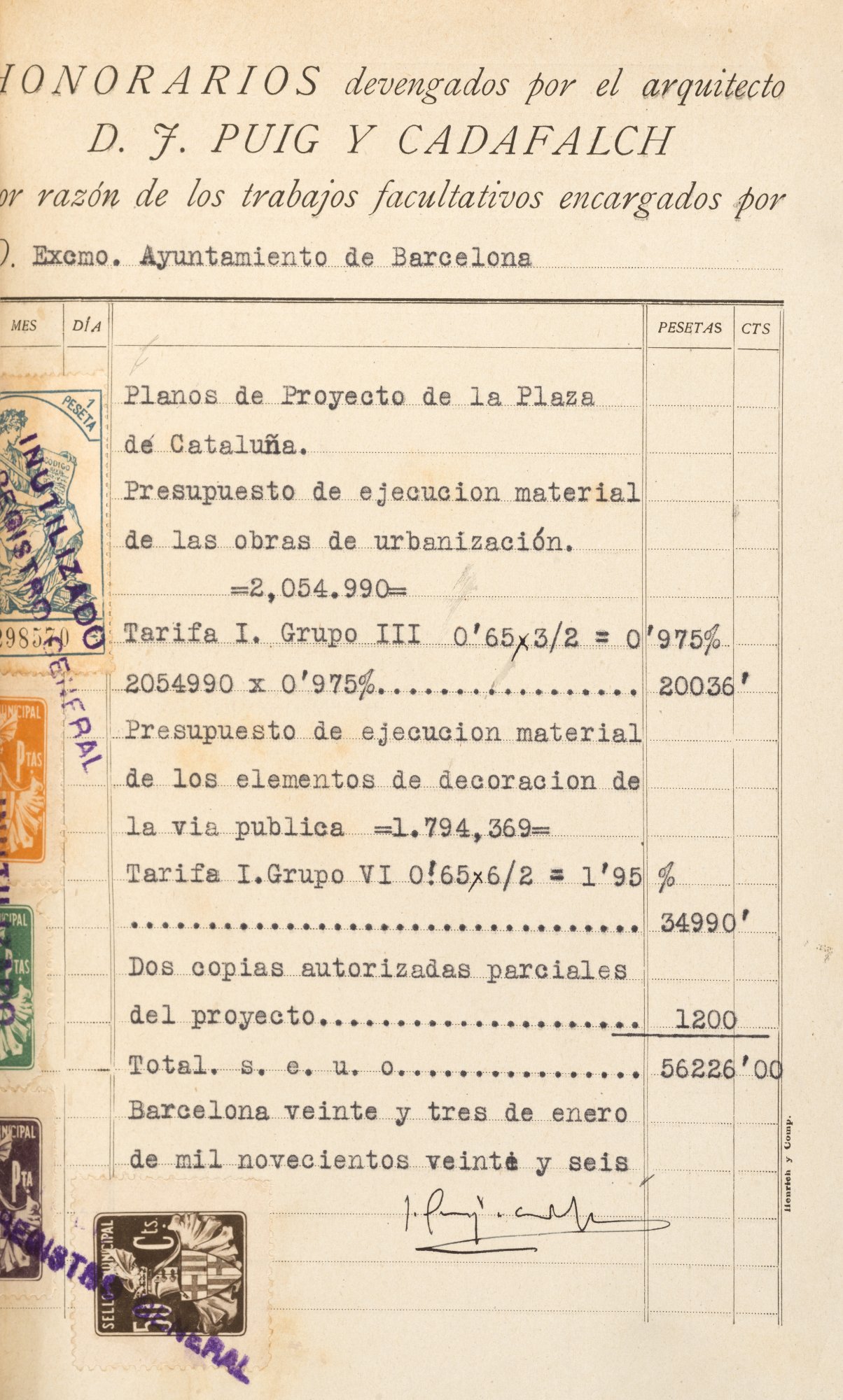 De fet, la defenestració de Puig a conseqüència de la dictadura de Primo de Rivera encoratja l’Ajuntament a no pagar-li els honoraris per la feina feta, per la qual cosa Puig va emportar-se les sis carpetes amb tots els projectes que havia elaborat i que, per tant, no van poder entrar als fons d’aquest Arxiu.