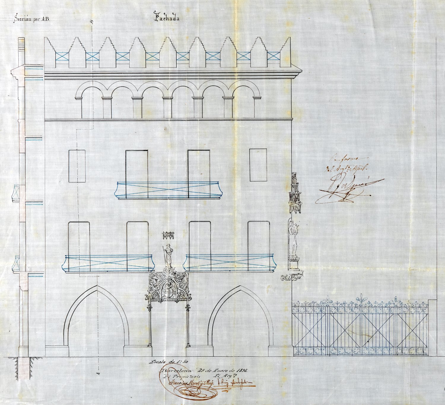 Al tombant de segle XIX, els principals comerços de la ciutat encara se situaven al llarg dels eixos principals de la Barcelona vella, tot i l’impuls imparable del creixent Eixample; i és justament aquí on trobem un primer Puig i Cadafalch que dissenya establiments comercials i reforma immobles ja construïts. De fet, l’únic edifici que construeix de nova planta, la casa Martí —per encàrrec de Francesc Martí i Puig—, tot i ser la típica casa de veïns, de seguida es va fer cèlebre per la cerveseria Els Quatre Gats que estava situada a la planta baixa, i també ha passat a la història pel fet de ser el primer edifici medievalitzant que Puig construeix a Barcelona. L’encert de Puig es va traduir en el nou encàrrec de Francesc Martí de reformar una altra casa que tenia al carrer de la Boqueria seguint el mateix estil.