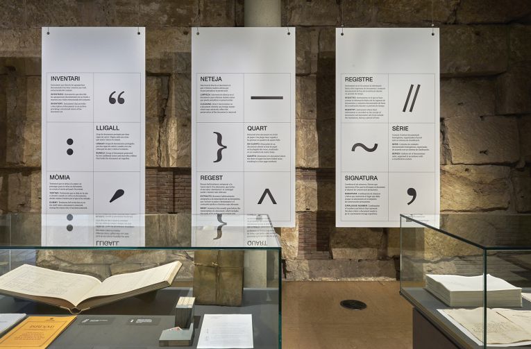 Amb aquesta instal·lació, l’AHCB, a la seu de la Casa de l’Ardiaca, comença un nou camí en la manera d’exposar documents i d’explicar-se a si mateix.