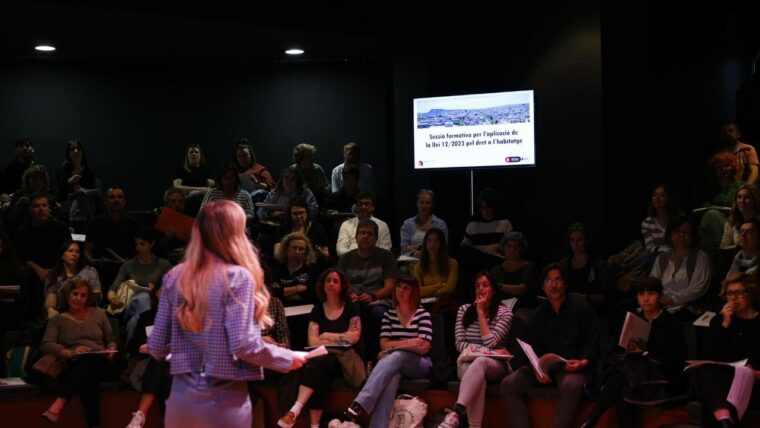 Per aquest motiu, l’Ajuntament de Barcelona ha organitzat unes sessions formatives per explicar les claus per viure de lloguer a Barcelona. La d’aquest dilluns, 8 d’abril, l’ha presentada l’arquitecta i comunicadora Núria Moliner i s’ha dirigit als treballadors i treballadores d’habitatge, que han pogut conèixer les novetats legislatives de primera mà i resoldre dubtes a partir de casos concrets d’aplicació. D’aquesta manera, es podrà oferir una millor atenció a les Oficines d’Habitatge de l’Ajuntament de Barcelona.