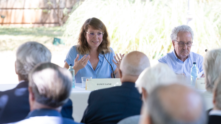 Como es habitual, un gran número de exconcejales y exconcejalas asistieron a este encuentro, que ofrece la alcaldesa a la Associació Consell de Cent. Protegidos por la sombra de los árboles del jardín, la segunda teniente de Alcaldía, Janet Sanz, responsable del área de Ecología, Urbanismo, Infraestructuras y Movilidad nos describió algunos de los proyectos urbanísticos de la ciudad bajo el título de “Superilla: la Barcelona del siglo XXI” reflexionando sobre la situación del medio ambiente y de la sostenibilidad en Barcelona y sobre las propuestas que se están poniendo en marcha para afrontar los retos de la emergencia climática.