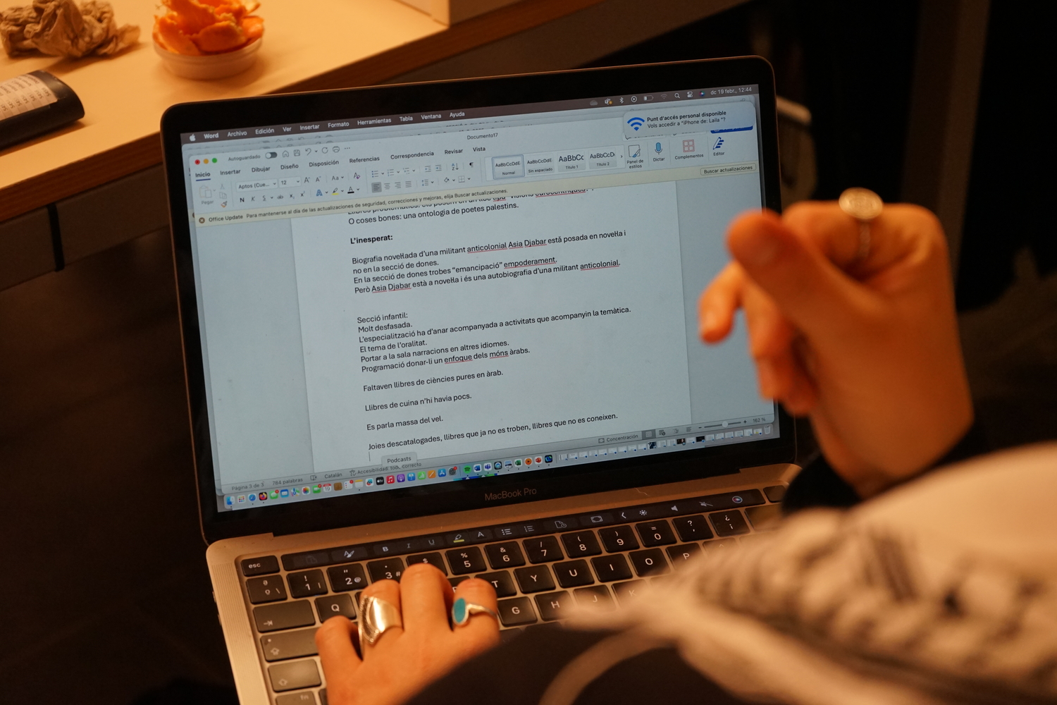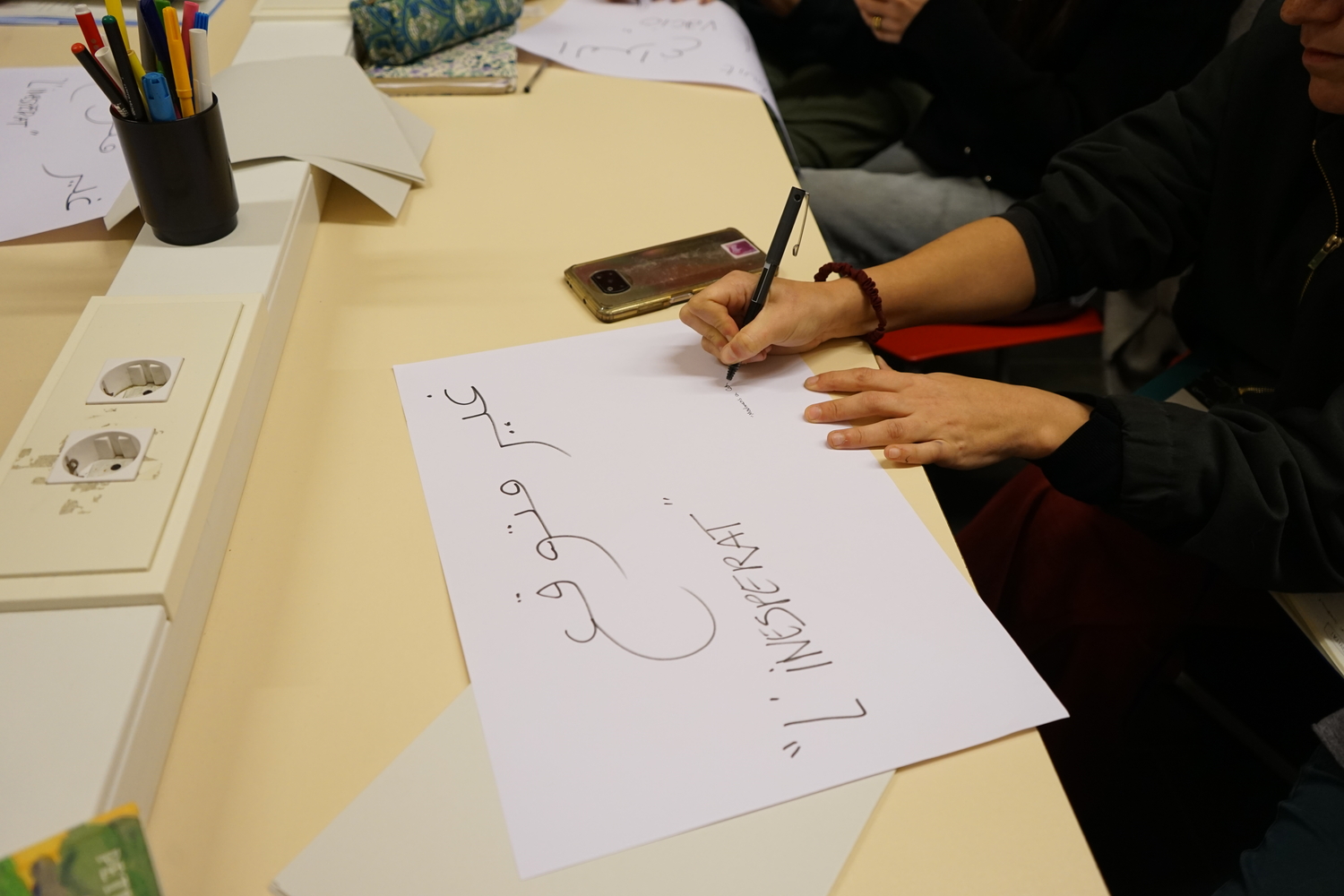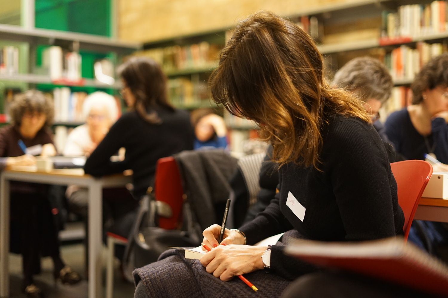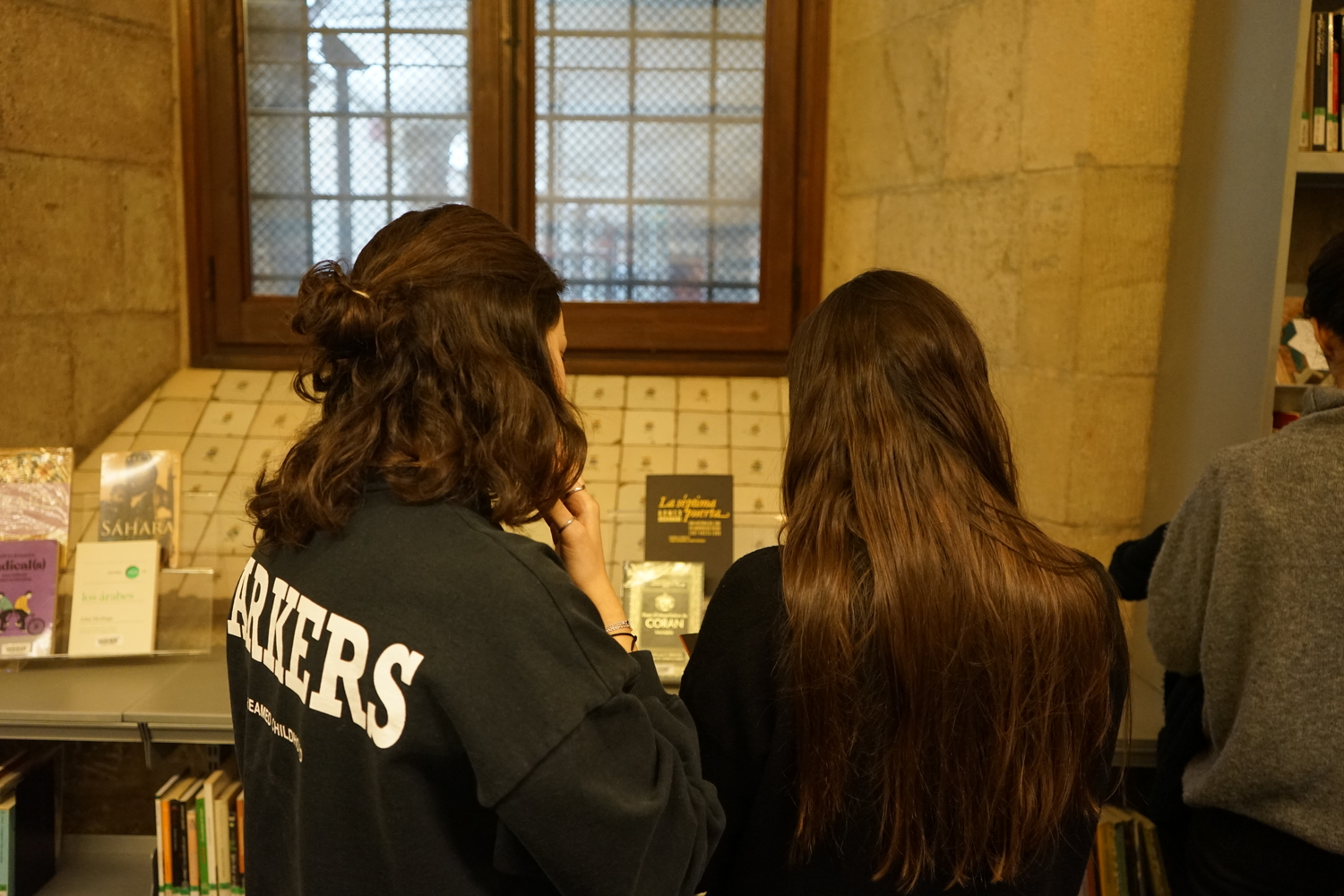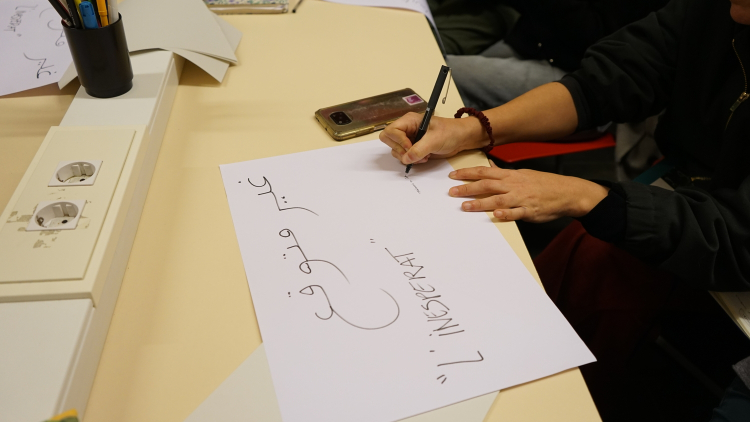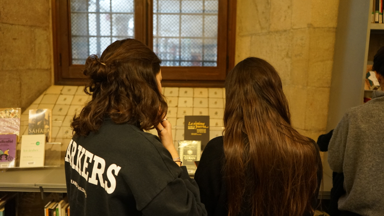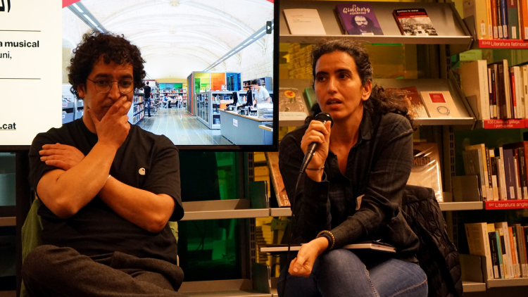 A continuació, la Tànit va proposar una reflexió sobre la presència de la llengua àrab a la ciutat. Seguidament, la Danae va introduir un marc per dialogar sobre l’origen colonial de les classificacions bibliogràfiques, abans de finalitzar amb una breu presentació de la classificació del fons per part de la biblioteca, actualment anomenat "Móns àrabs", entre altres categories com Cultura Amazigh o Diversitat cultural.