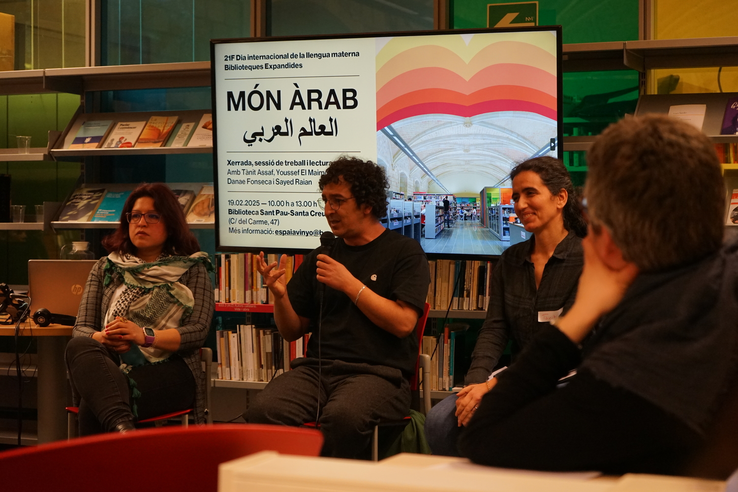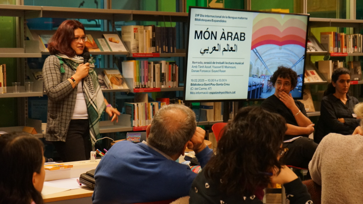 El 19 de febrer de 2025, en el marc del 21F, Dia internacional de la Llengua Materna, i del cicle Biblioteques expandides amb Biblioteques de Barcelona –, l’Espai Avinyó va iniciar un nou procés de coproducció amb la Biblioteca Sant Pau - Santa Creu, amb la col·laboració del Centre d'Arts Santa Mònica. La sessió va comptar amb la participació de Tànit Assaf Muntané, professora i investigadora en llengua i cultura àrab; Youssef El Maimouni, escriptor i educador social; Danae Fonseca, investigadora especialitzada en estudis àrabs contemporanis i feminismes descolonials; i Sayed Raian, poeta i productor musical.