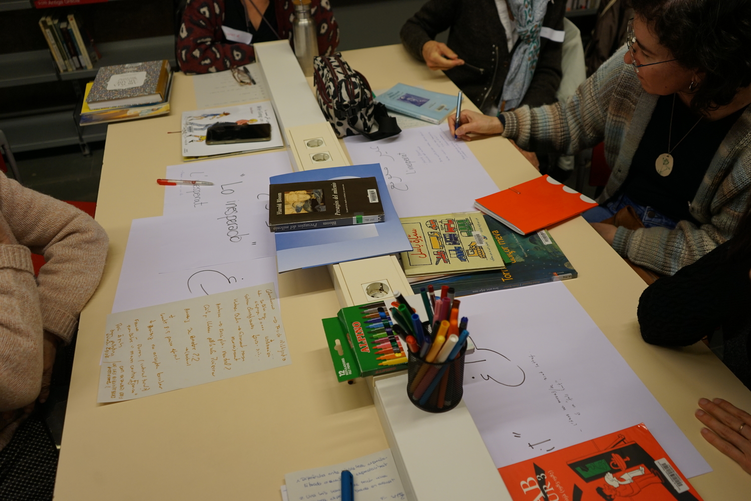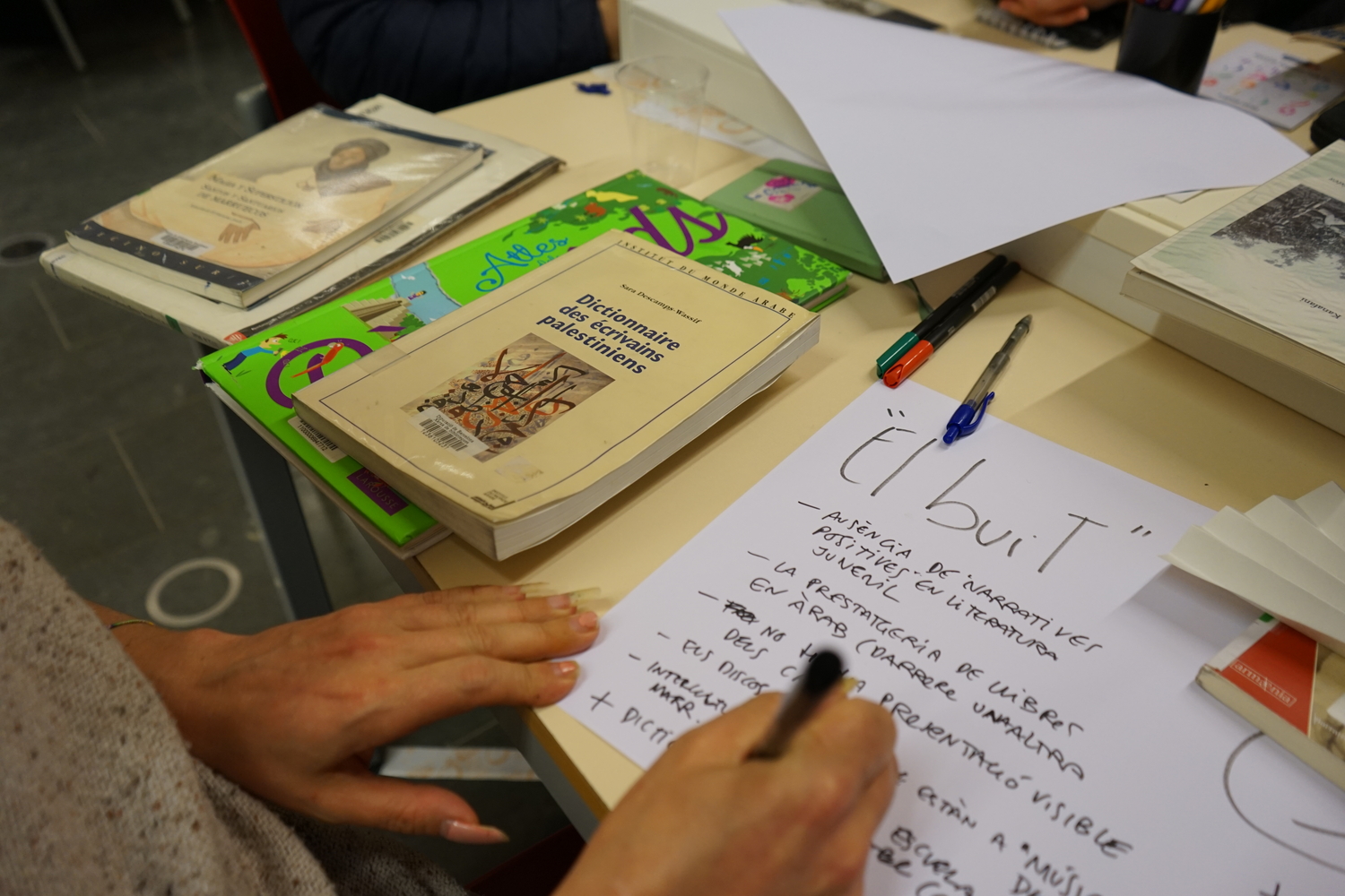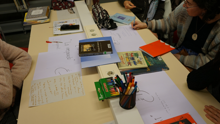 D’aquesta manera, el públic assistent, incloent-hi tècniques bibliotecàries i representants d’entitats del barri, va participar en un exercici de revisió del fons seguint dues pautes clau: trobar algun element inesperat (tant en positiu com en negatiu) i identificar algun buit significatiu. Així, vam reflexionar sobre com es construeixen i es transmeten els relats sobre allò àrab i de quina manera es poden diversificar les perspectives presents.