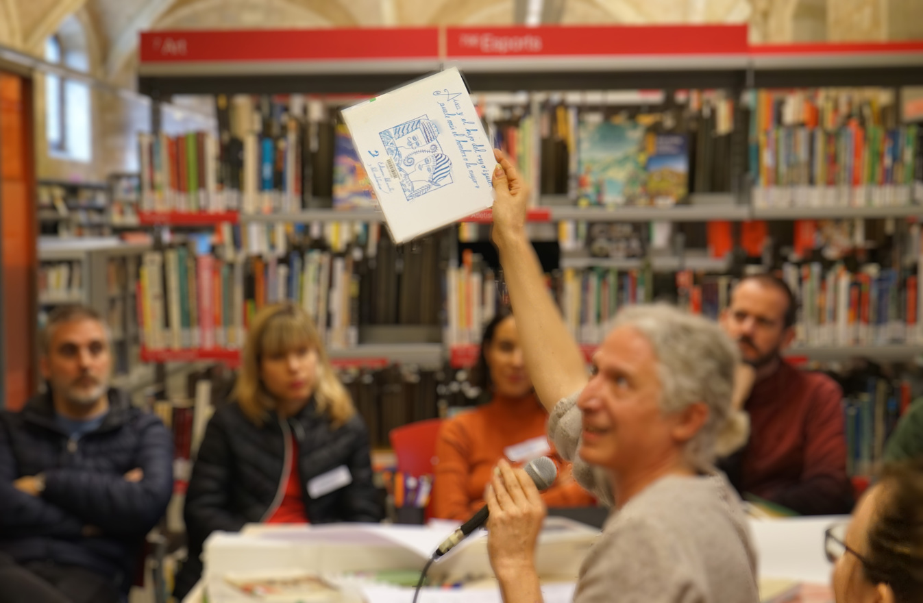 La sessió va començar amb una sèrie de provocacions plantejades per Youssef que ens poden guiar a l’hora de repensar el relat de la biblioteca: