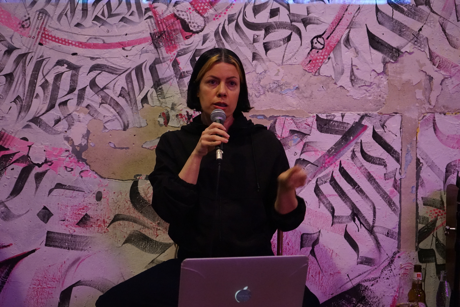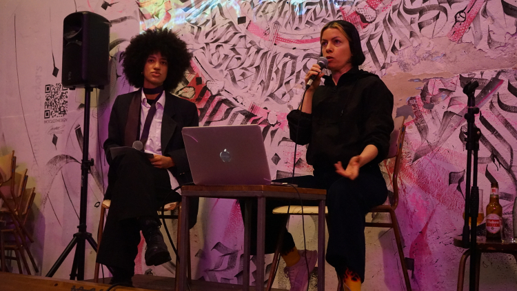 De l’altra, es va reflexionar sobre com dones i dissidències contribueixen a transformar la música electrònica en un espai de cures, promovent noves formes d’expressió i resistència. Isamit Morales va compartir la seva experiència enfrontant-se a l’exclusió en la música electrònica i els espais de festa. A través de la seva escola, busca transformar l’escena des de la base, compartint vivències i impulsant un canvi estructural.
