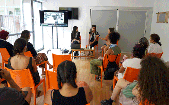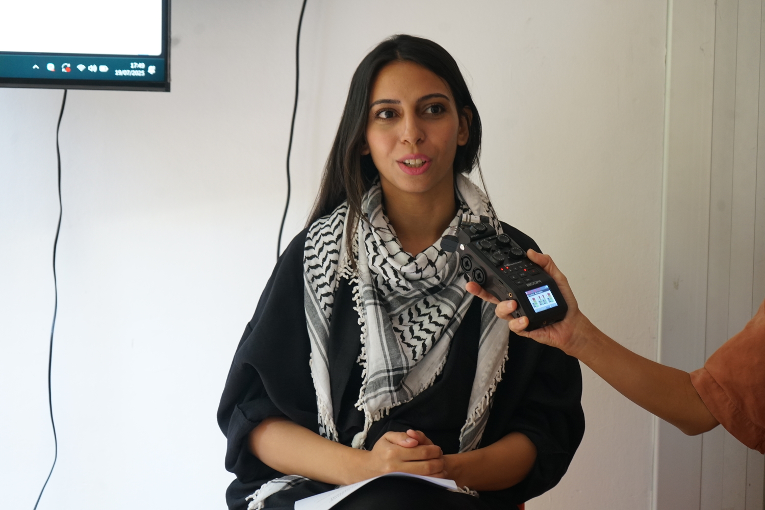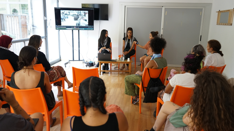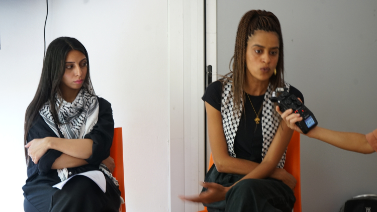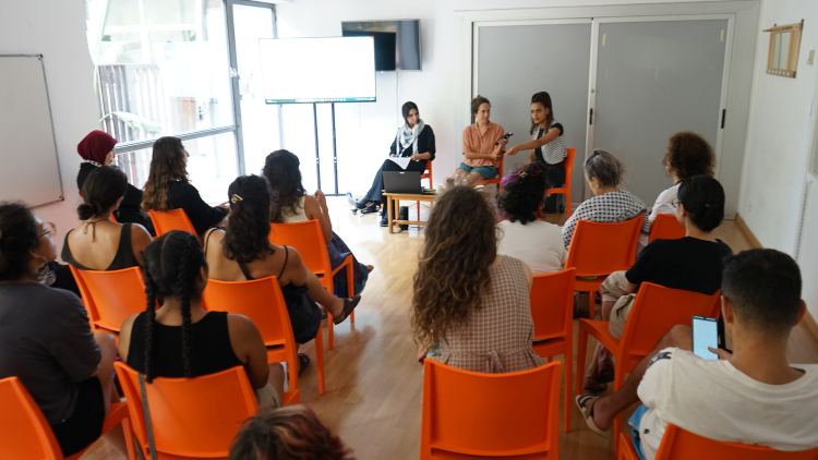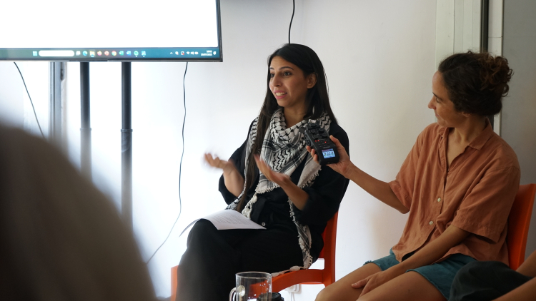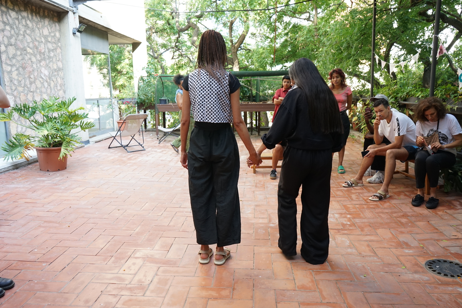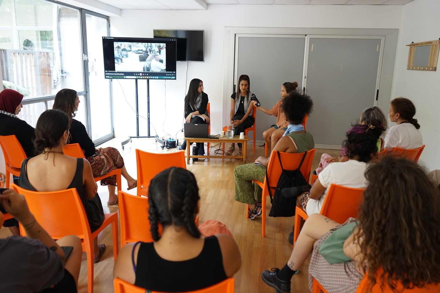 Per la seva banda, Shahd Abusalama ens va relatar en primera persona el setge que pateix la seva família a Gaza i ens va mostrar el curtmetratge del cineasta britànic-palestí Musheir El-Farra, And Still They Dance, rodat durant la Segona Intifada, on moltes persones, entre elles la seva àvia, parlen del dabke davant la continuïtat colonial de l’ocupació i del genocidi. Finalment, totes dues ens van convidar a practicar els passos principals del dabke, connectant amb les lluites del poble palestí i posant en valor les arts corporals com a formes de resistència i transmissió cultural.