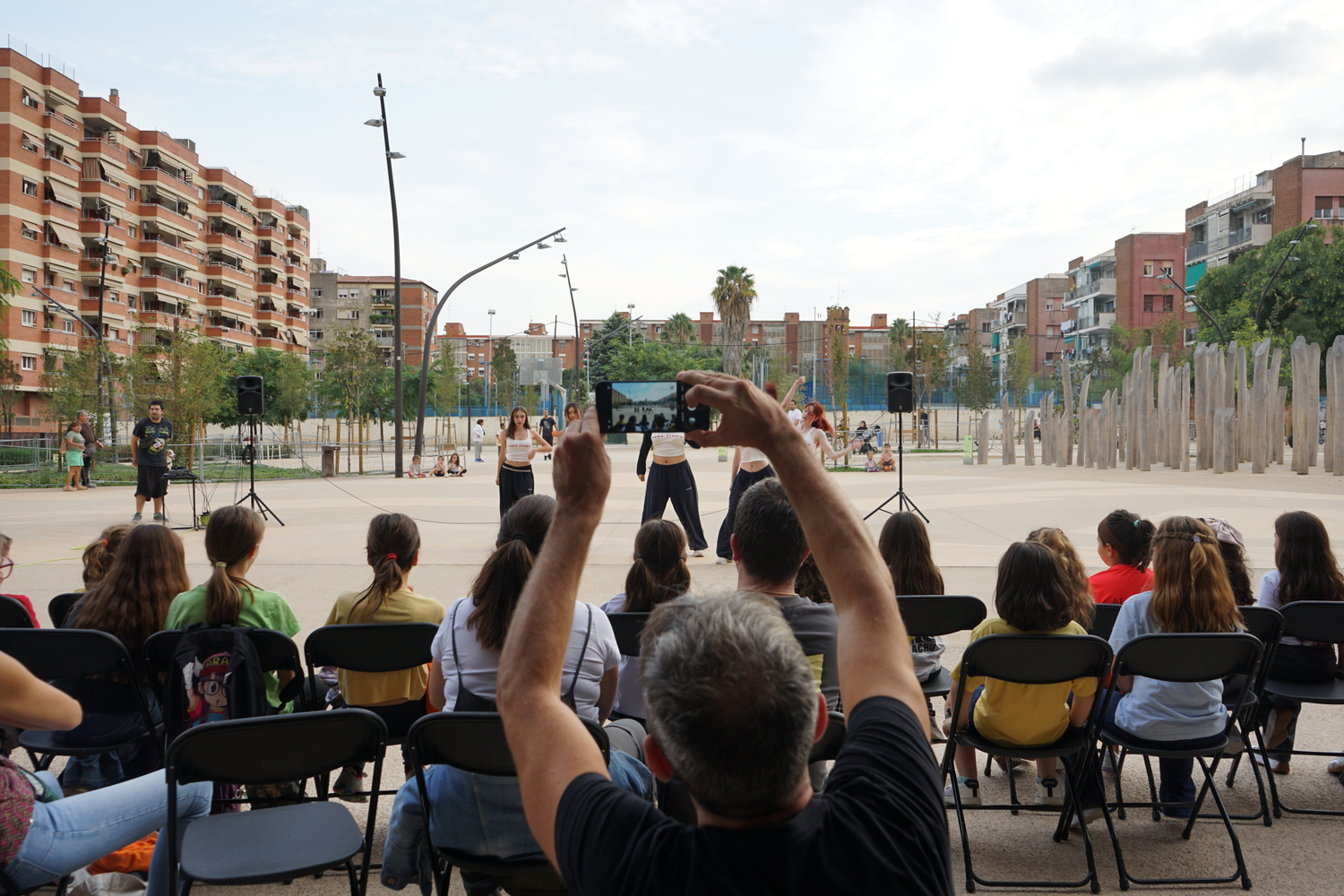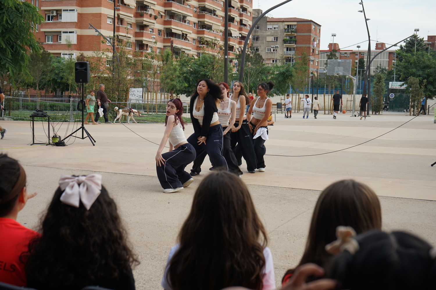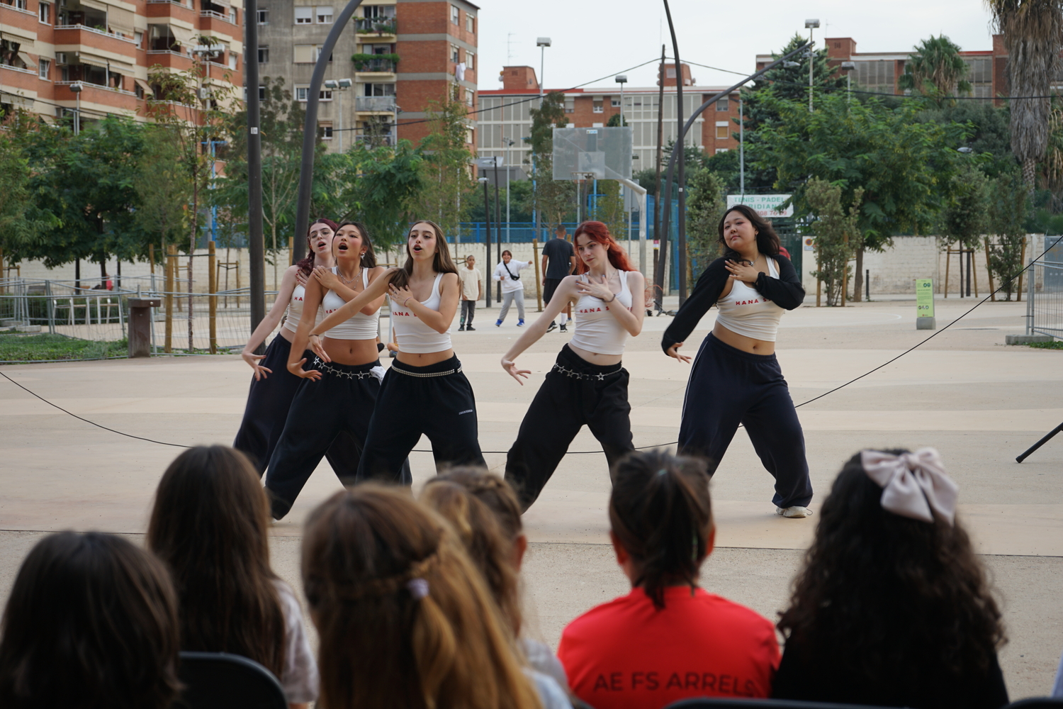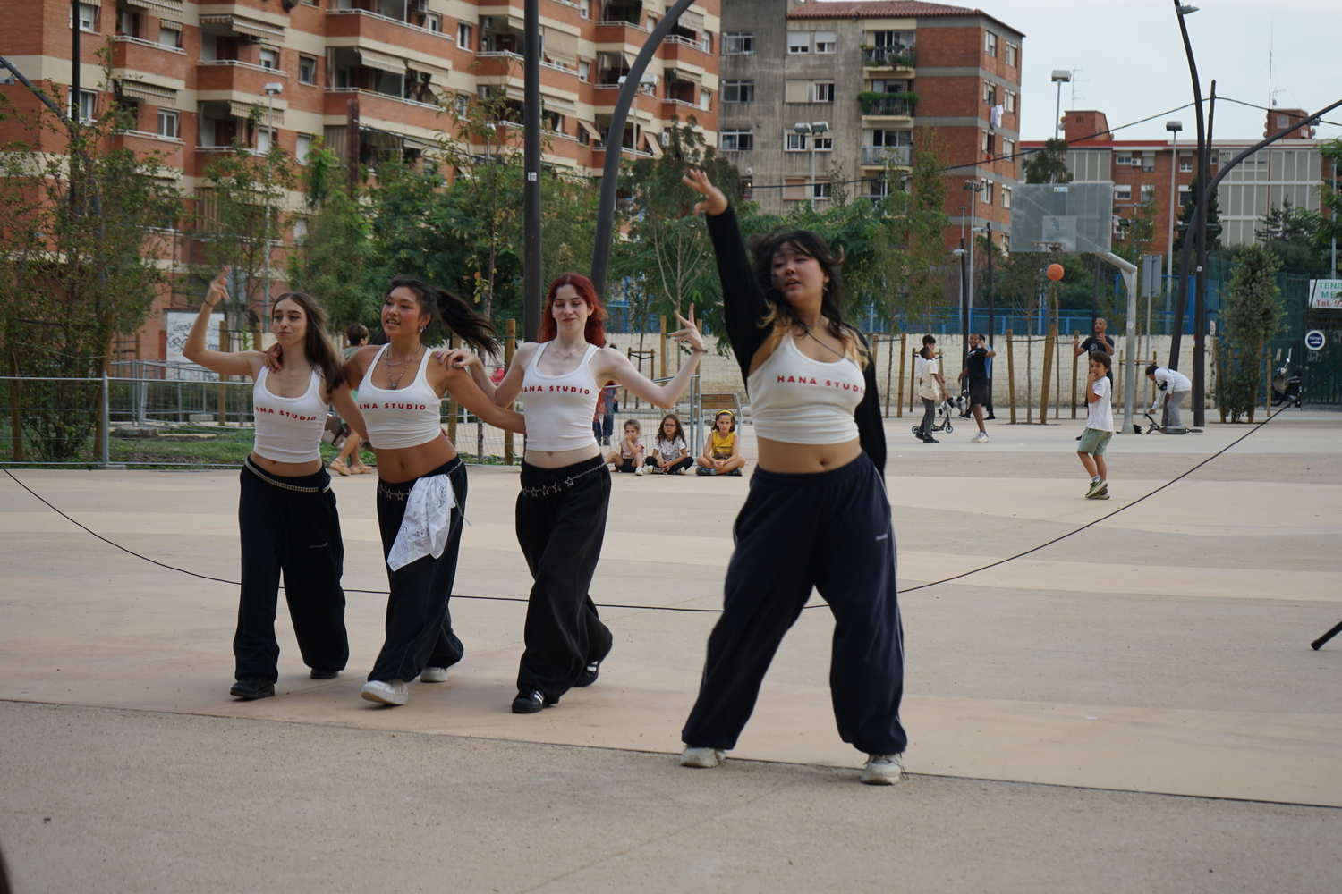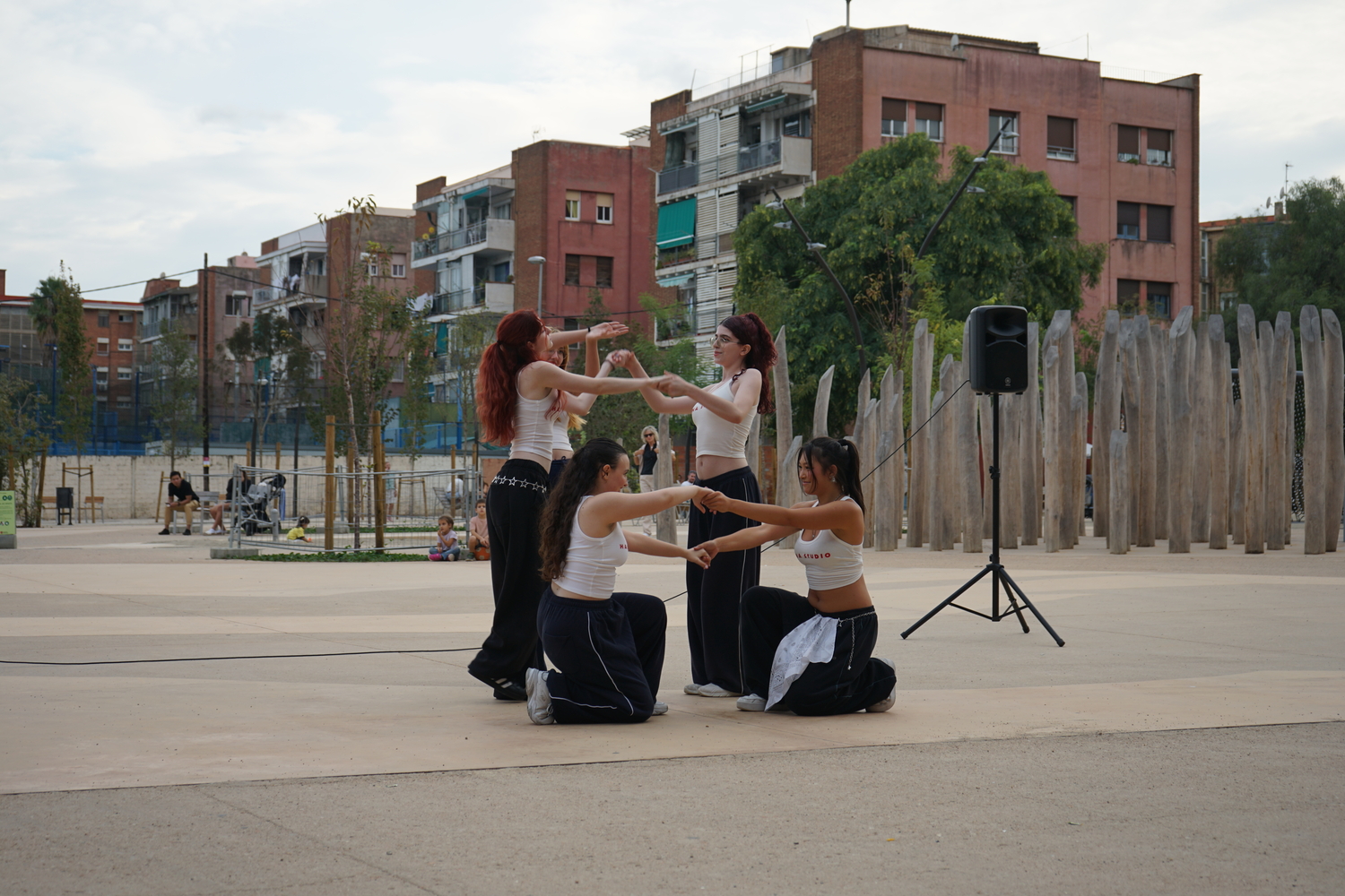 L’activitat va començar amb una mostra coreogràfica de Riot GRLZ, grup de competició de K-pop de Hana Studio. Tot seguit, les ballarines Hana i Sendy van conversar sobre com van aprendre i construir comunitat amb el K-pop (abreviatura de Korean pop). A partir de les experiències de Sandy i Hana, vam posar la lupa sobre el K-pop com a fenomen més enllà de les coreografies virals: els vídeos i les xarxes socials no només difonen els balls, sinó que també influeixen en com es dissenyen els moviments, en la producció i l’estètica, i en com els participants construeixen identitat i comunitat a través del ball.