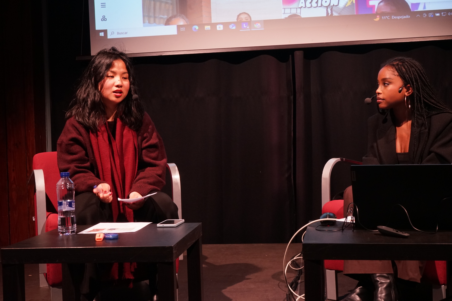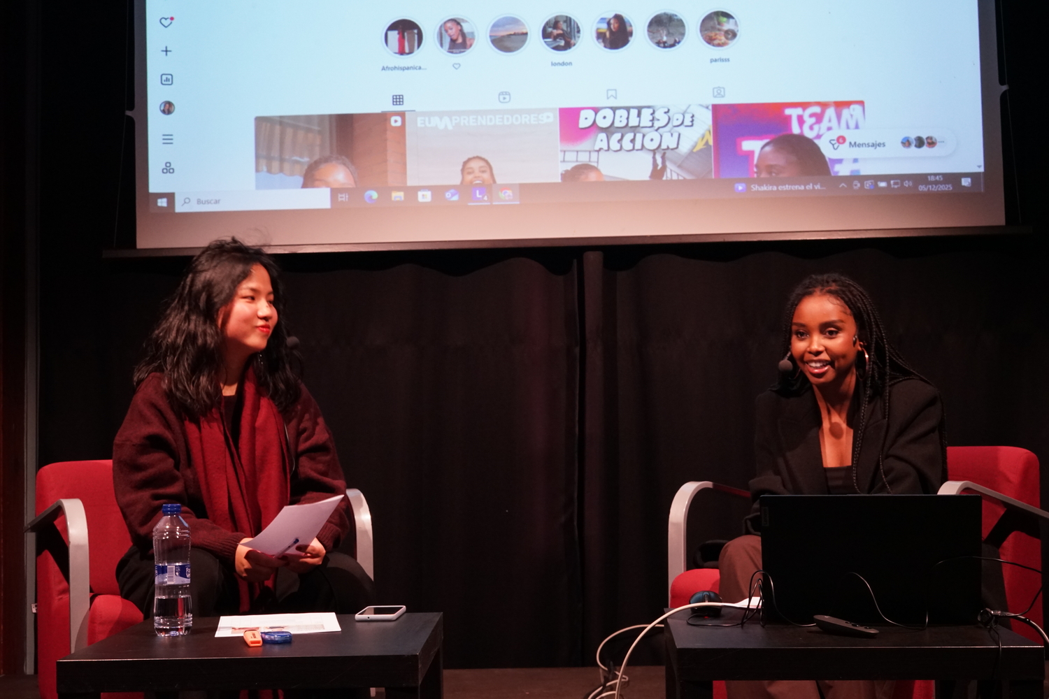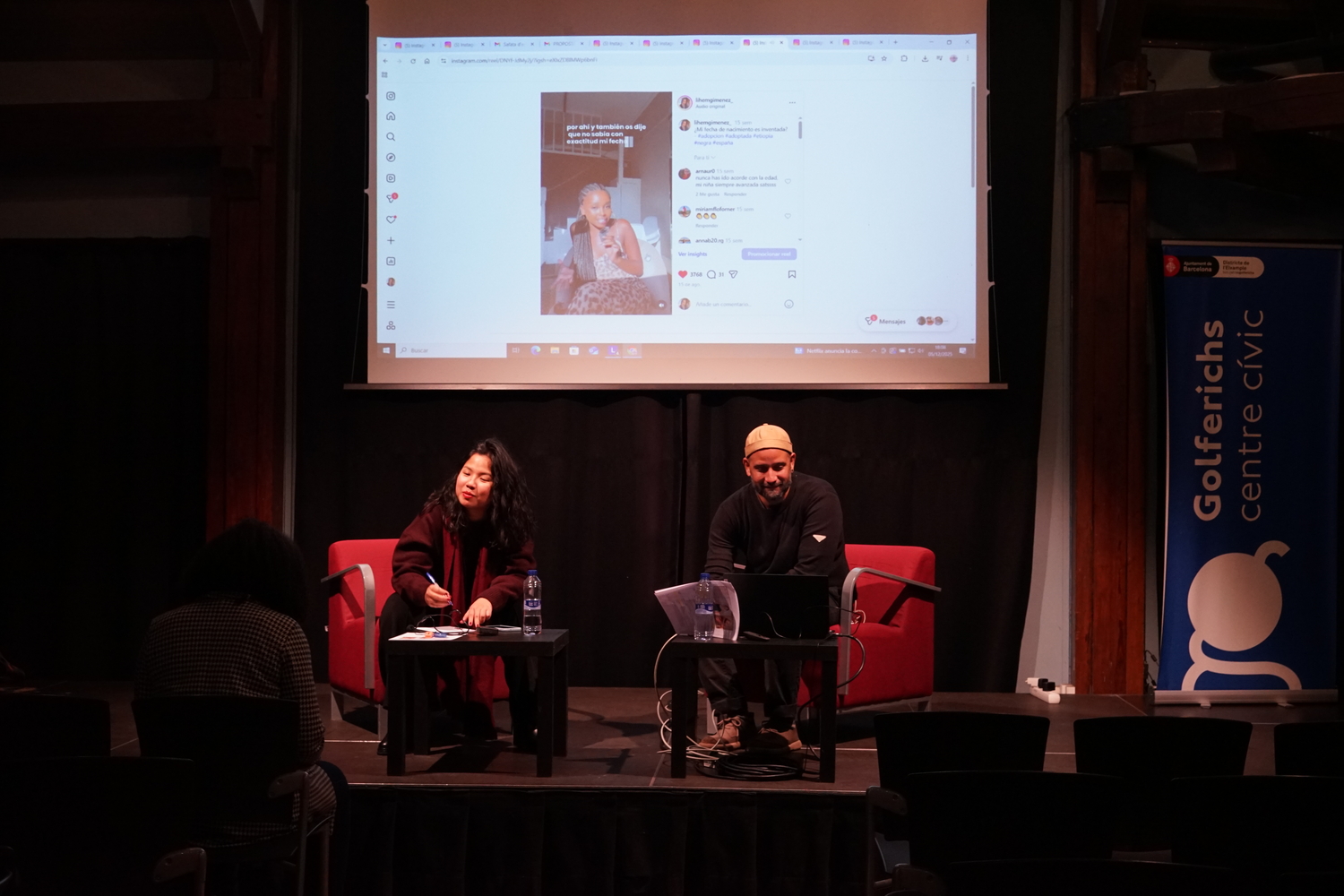La conversa, iniciada a partir de les preguntes plantejades per Laia Muñoz, va obrir una reflexió crítica sobre els debats que emergeixen en la creació de continguts sobre adopció, les seves possibilitats per trencar estigmes i repensar el model d’adopció, així com les estratègies per generar espais segurs d’acompanyament entre joves adoptades. Les ponents van abordar el racisme estructural i quotidià a través de la mostra de petites càpsules de vídeo, en les quals es ressaltaven respostes davant la soledat i es trencaven silencis que travessen moltes persones adoptades no blanques.