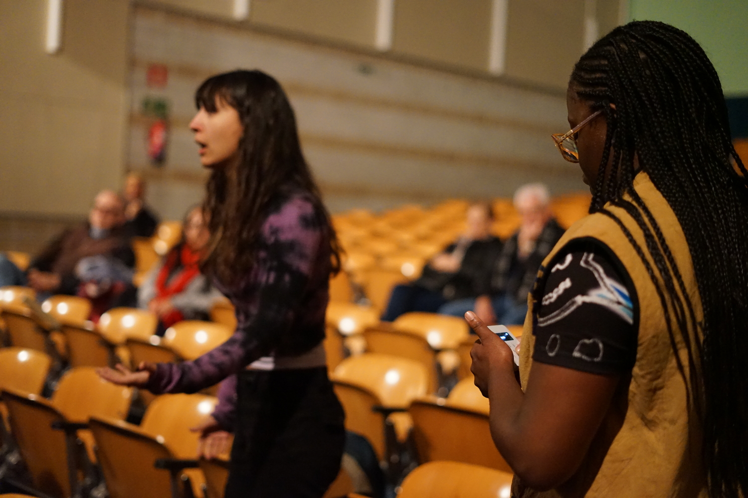 Durante el diálogo con Remei Sipi, se profundiza en Bisila, clave en el origen del pueblo bubi, y se debate cómo las dinámicas de apropiación cultural, el sincretismo religioso, las prácticas teatrales occidentales y las narrativas coloniales y culturales siguen afectando al presente. Asimismo, en la línea de la obra, se habla sobre la hegemonía de la lengua castellana en Guinea Ecuatorial. Las participantes pueden dialogar sobre cómo las leyendas, la cosmogonía y la memoria cultural pueden ser reivindicadas desde el humor y la crítica, y cómo las historias olvidadas vuelven a hablar en primera persona.