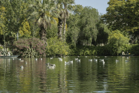 - La gaviota reidora (Larus ridibundus) puede verse todo el año, sobre todo en invierno, cuando llega en grandes grupos. No suele nidificar en la ciudad, pero es común en zonas húmedas, como el delta del Llobregat.