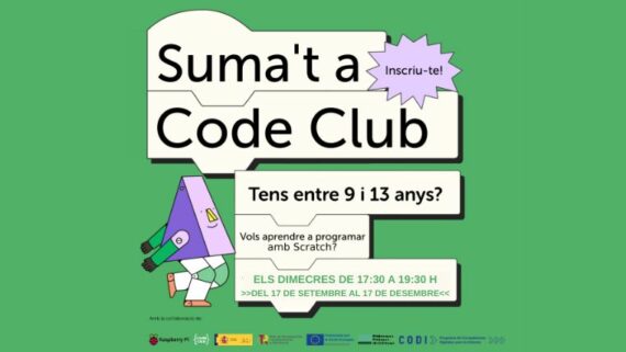 22/07/2025 - 16:04 h Suma't a Code Club!Vols aprendre a crear històries interactives, jocs emocionants i animacions sorprenents? Aprèn a programar amb Scratch! Tretze sessions a la Biblioteca El Clot-Josep Benet. Del 17 de setembre al 17 de desembre. Inscripcions obertes.