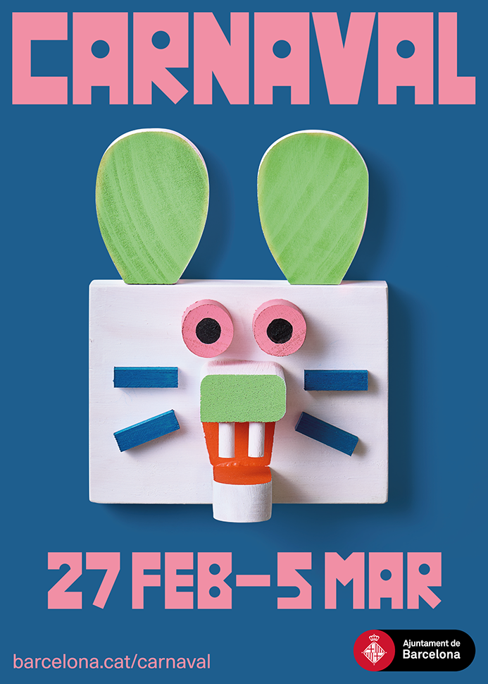 Per carnaval, Barcelona es vesteix de celebració amb tota mena d’activitats festives. I els cartells d’enguany capturen l’essència d’aquests dies, amb unes simpàtiques màscares de fusta, obra de l’artista Miguel Bustos.