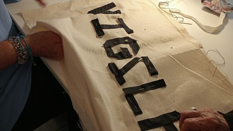 La producción de las obras ha sido una colaboración entre la artista Romina Pezzia y la Red de Mujeres Cosidoras de Barcelona, entre marzo y junio de 2025.
