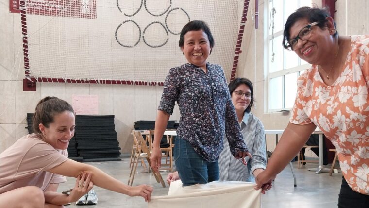 Artista Romina Pezzia con las Mujeres Cosidoras
