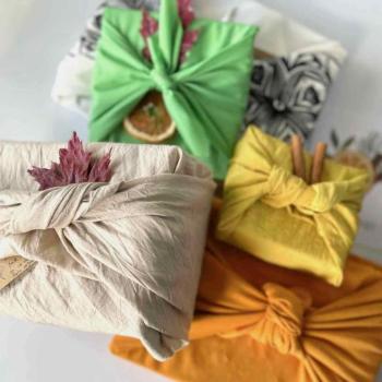 El furoshiki és una tela quadrangular tradicional japonesa que s’utilitza per embolicar, transportar i presentar objectes de manera funcional i estètica. Aquesta tècnica és coneguda per la seva versatilitat, sostenibilitat i bellesa, ja que permet substituir l’ús de bosses de plàstic o paper per un material reutilitzable.