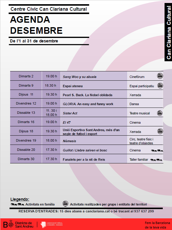 Can Clariana Cultural és un Centre Cívic de gestió ciutadana amb dos eixos que caracteritzen el projecte: la participació ciutadana i les arts escèniques. Situat al barri del Congrés-Indians hi trobareu una programació cultural diversa i una oferta variada de tallers.