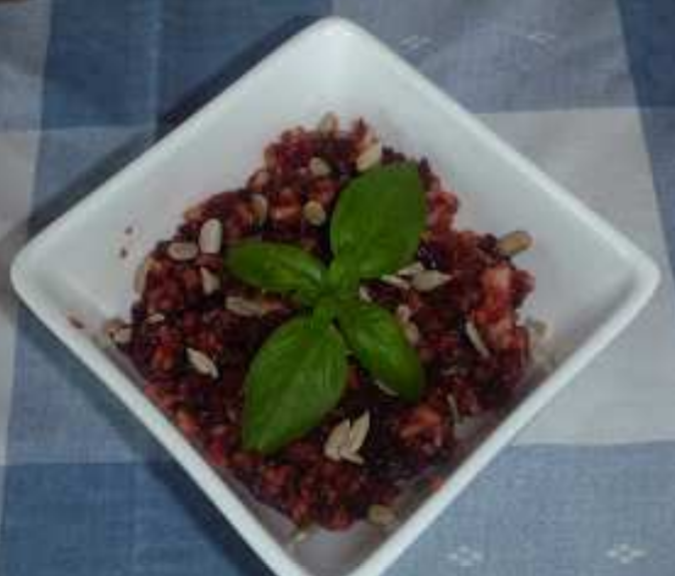 - També ho podeu fer amb remolatxa crua i pelada. (a nosaltres ens agrada més les dues textures dur de la poma i tou de la remolatxa).