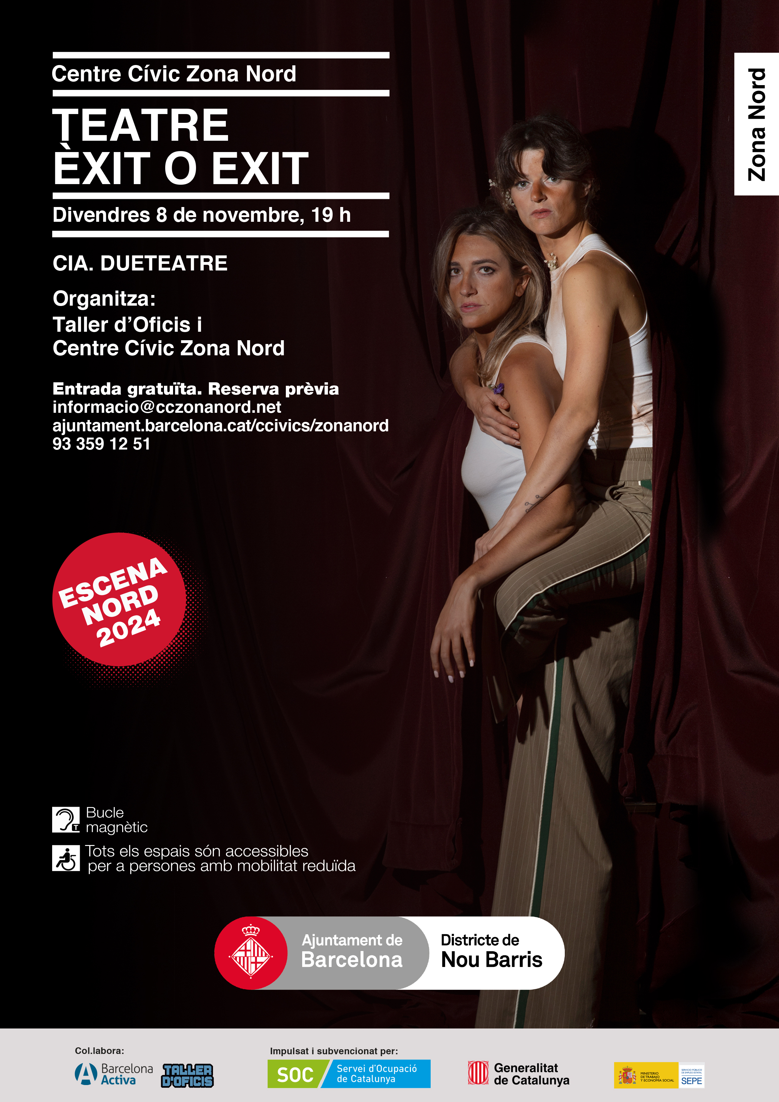 Enviant un correu electrònic especificant el dia i l'espectacle a: informacio@cczonanord.net