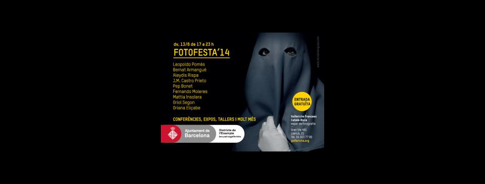 La nova edició de la Fotofesta se celebrarà el proper divendres 13/06, entre les 17 h i les 23 h. Alguns dels noms confirmats són els de Leopoldo Pomés, Fernando Moleres o Aleydis Rispa. Enguany, a més, s'inauguraran les noves instal·lacions de l'Espai Català Roca. La Fotofesta'14, per tant, tindrà dues seus: la de Golferichs (Gran Via, 491) i la del nou espai (Llançà 21).