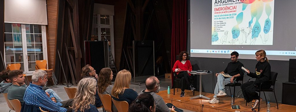 La sisena edició de l’Argumenta BDC, el programa de pensament del Barcelona Districte Cultural, ja és història. Des del dia 23 d'octubre de 2024 fins el 26 de març, ha omplert els sis centres cívics participants de reflexions i converses sobre la idea d'emergència, un concepte amb dos sentits aparentment oposats: el d’una urgència que implica perill i el del naixement d’alguna cosa nova que apareix amb força.