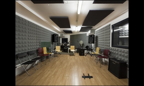 La sala dispone de regulación de aire acondicionado independiente al resto del edificio y de un almacén con armarios específicos para dejar los instrumentos musicales.