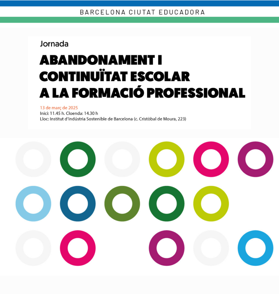 El Consell Municipal de la Formació Professional de Barcelona (CFPB) organitza, el pròxim 13 de març, la jornada “Abandonament i continuïtat escolar en la formació professional”, que pretén aprofundir i ampliar el coneixement existent sobre l’estat del fenomen de l’abandonament educatiu prematur en els Cicles Formatius de Grau Mitjà (CFGM) a la ciutat de Barcelona. També es vol analitzar els factors d’abandonament i permanència escolar de l’alumnat de CFGM per tal d’aprofundir en els elements que possibiliten i garanteixen la continuïtat formativa de tots els i les estudiants.
