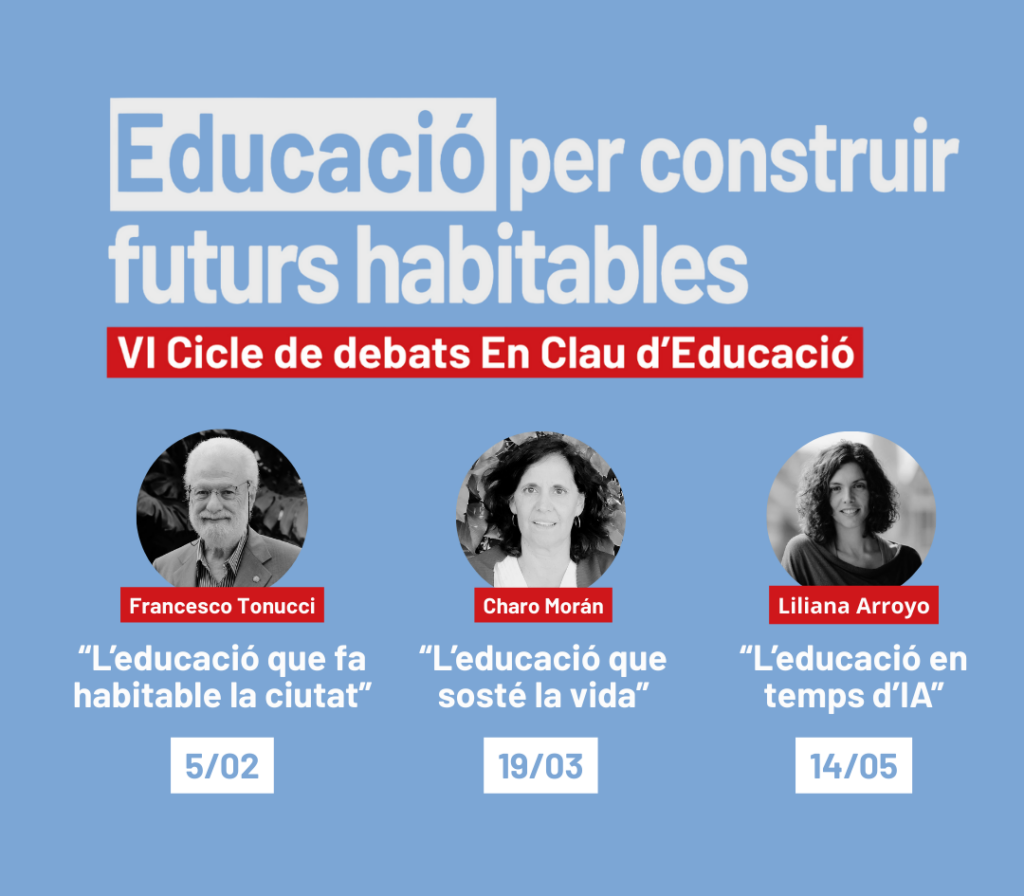 El Consell d’Educació Municipal de Barcelona (CEMB) i el Consell de la Formació Professional de Barcelona (CFPB) organitzen el VI Cicle de Debats en Clau d’Educació, que enguany es titula ‘Educació per construir futurs habitables’.