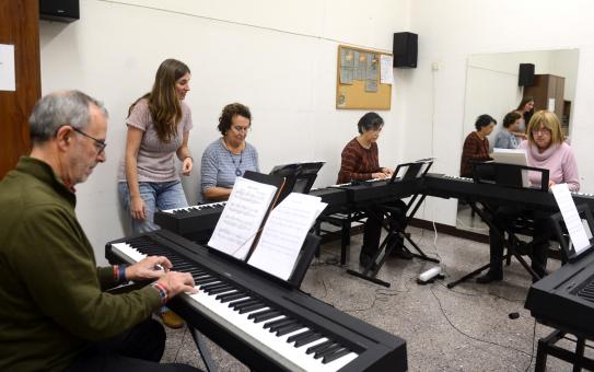 Esta iniciativa, impulsada por el Institut Municipal d’Educació de Barcelona, está dirigida a personas mayores de dieciocho años que, con nulos o escasos conocimientos musicales previos, quieran iniciarse o mantener el contacto con la música a través de la práctica, la divulgación y la formación teórica y práctica, tanto instrumental como vocal.