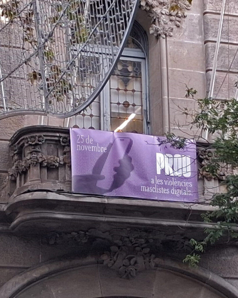 Al vespre, la façana s’il·lumina de color lila amb motiu del Dia Internacional per l’Eliminació de la Violència vers les Dones.