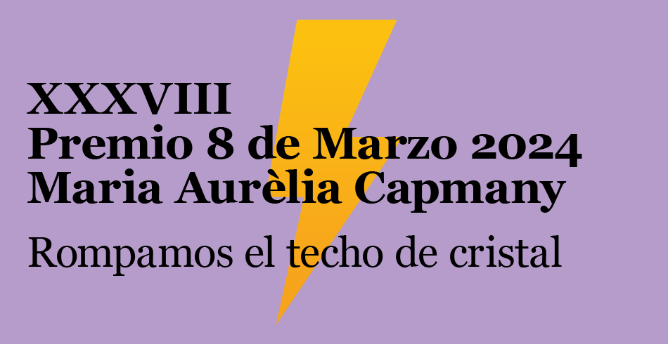 La 38.ª edición del Premio 8 de Marzo - Maria Aurèlia Capmany, con el lema “Rompamos el techo de cristal”, se orienta a dar apoyo a proyectos que ayuden a promover acciones positivas para conseguir erradicar la segregación vertical en los diferentes sectores económicos y sociales.