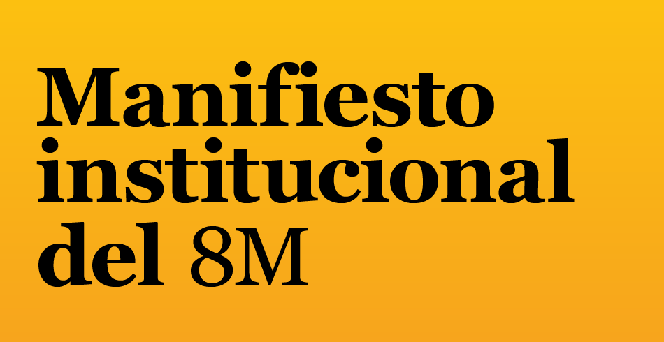 Este 8M, por primera vez, se leerá un manifiesto para expresar el compromiso firme del Ayuntamiento de Barcelona con la lucha feminista y para denunciar todas las desigualdades y discriminaciones que sufren las mujeres en todos los ámbitos y de forma estructural solo por el hecho de serlo.