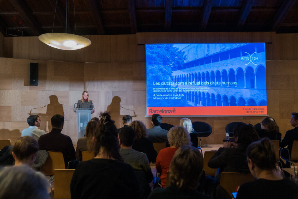 El Monasterio de Pedralbes ha acogido el acto “Las ciudades como refugio de los derechos humanos”, donde se ha presentado la nueva Medida de Gobierno de Derechos Humanos y No discriminación 2025–2027, una acción de gobierno que quiere hacer de Barcelona una ciudad que transforma los valores democráticos en políticas tangibles y que vincula el bienestar con la dignidad.