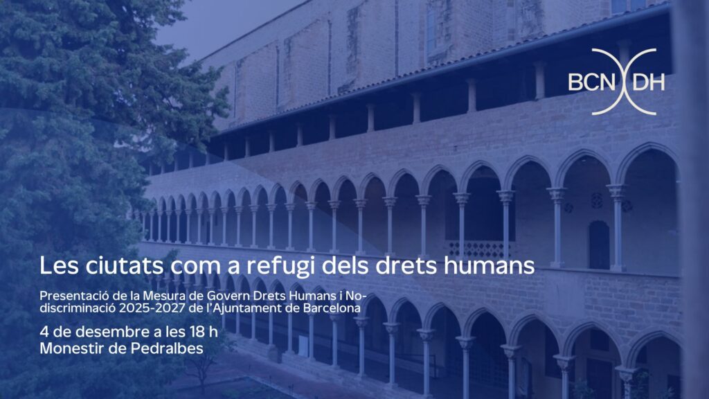 El 4 de diciembre a las 18 h, el Monasterio de Pedralbes acogerá el acto “Las ciudades como refugio de los derechos humanos”, donde se presentará la nueva Medida de Gobierno de Derechos Humanos y No-discriminación 2025-2027 del Ayuntamiento de Barcelona.