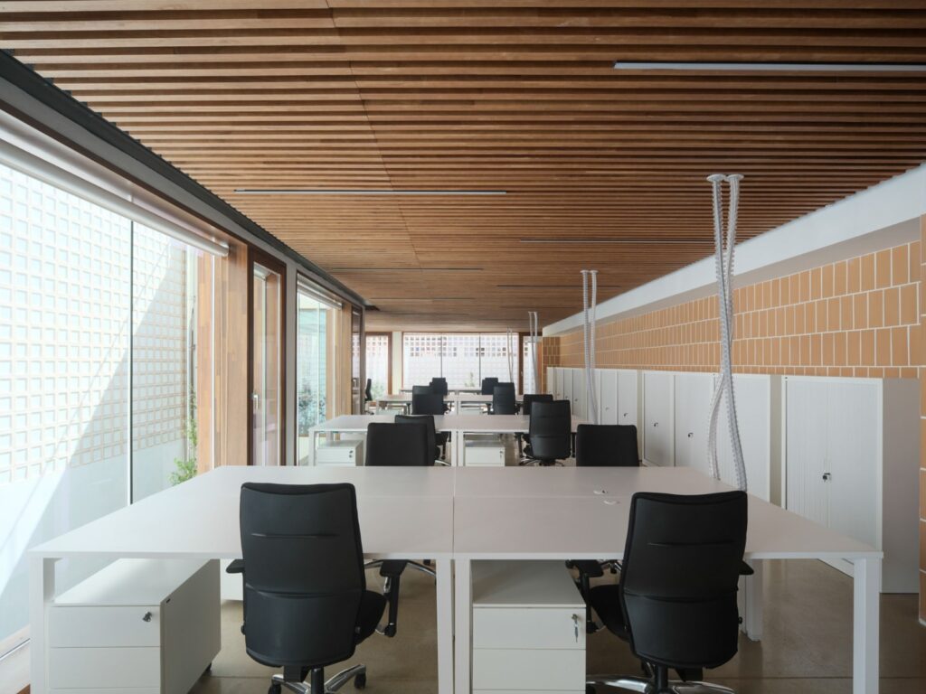 El nou edifici manté la visibilitat entre els edificis adjacents i s’integra harmònicament amb l’escola, el pati d’esbarjo i els jardins, a més conviu amb una part de l’antiga Myrurgia que està catalogada patrimonialment.