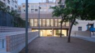 El nuevo edificio mantiene la visibilidad entre los edificios adyacentes y se integra armónicamente con la escuela, el patio de recreo y los jardines, además convive con una parte de la antigua fábrica Myrurgia que está catalogada patrimonialmente.