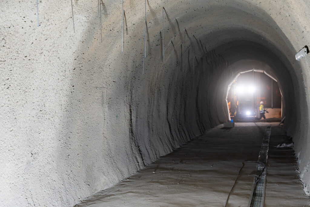 L’obertura dels portals de les galeries s’ha dut a terme des del tub ascendent amb la màquina retroexcavadora, aprofitant els talls nocturns, per demolir la volta de formigó. Des del final de la perforació fins ara, dins les galeries, s’han completat els treballs de revestiment i impermeabilització, i ara es treballa en la fase d’instal·lacions.