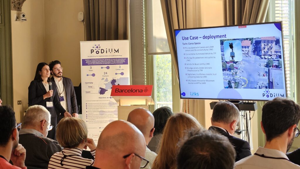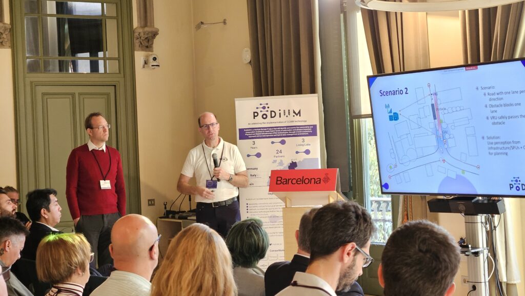 L’últim esdeveniment de PoDIUM, realitzat el passat dimecres, 19 de novembre, va presentar resultats dels tres Living Labs del projecte a Alemanya, Itàlia i Espanya. També va fer una demostració urbana en directe a la Gran Via amb dos escenaris de gestió del trànsit, centrats en l’usuari i habilitats per CCAM per a vehicles d’alta prioritat i usuaris vulnerables de la carretera (VRU).