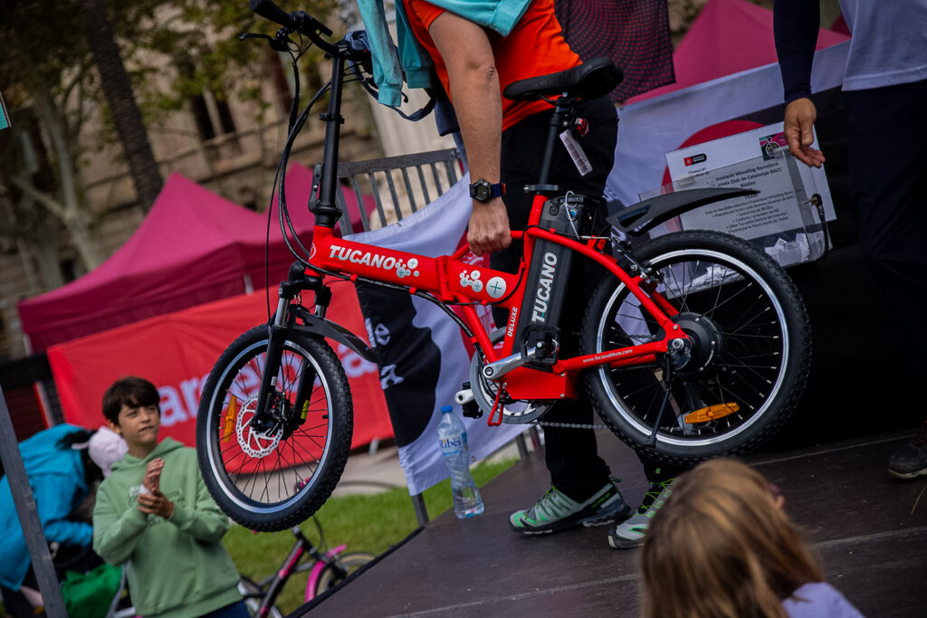 Finally, at a quarter past one in the afternoon, the cycling prize draw was held, with ten prizes ranging from a folding electric bicycle from Tucano to helmets or cycling equipment and books illustrated by Pilarín Bayés.