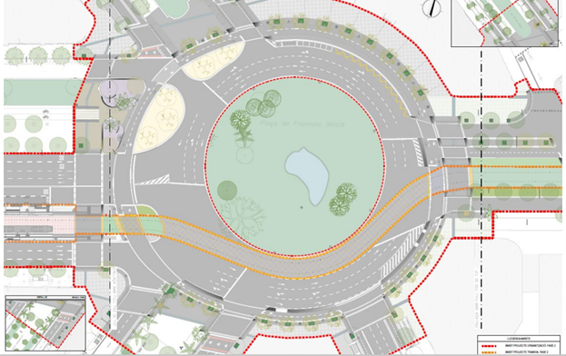 - Plànol de la intervenció que es durà a terme a la plaça de Francesc Macià per connectar el Trambaix i el Trambesòs
