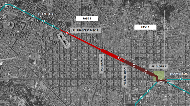 This stretch will include two tram stops, at Balmes and Casanova, and there will also be a shared bus and tram platform between Via Augusta and Passeig de Gràcia.